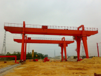 门式起重机(又称龙门起重机)是桥架通过两侧支腿支撑在地面轨道上的桥架型起重机。在结构上由门架、大车运行机构、起重小车和电气部分等组成。有的门式起重机只在一侧有支腿,另一侧支撑在厂房或栈桥上运行,称作半门式起重机。门式起重机的门架上部桥架(含主梁和端梁)、支腿、下横梁等部分构成。为了扩大起重机作业范围,主梁可以向一侧或两侧伸出支腿以外,形成悬臂。也可采用带臂架的起重小车,通过臂架的俯仰和旋转扩大起重机作业范围。 门式起重机适用于户外货场、物料场、散货装卸等。门式起重机具有现场利用率高、运行范围大、适应性广、通用性强等优点,广泛应用于港口货场。 门式起重机的优点如下:无需钢结构车间即可实现高度提升,因此得到了广泛的应用。操作.维修.拆装方便,可在其他地方使用。这种装置用途广泛,以后不用自己去二次转售(价格还是可以接受的)也不会变成废品。这类设备对环境要求不高,使用寿命长(平时要注意保养)。与其他类型的起重机相比,故障概率较低。 门式起重机在使用时也有缺点。使用时一般在室外,易受雨水腐蚀生锈;受风向影响时,一般不工作(必须采取固定措施);地面作业时,容易造成一些安全隐患(主要是轨道);只有维护到位,才能真正保证使用寿命(主要是防腐、加油和及时维护)。 |